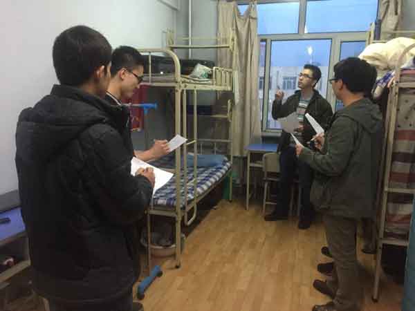 晚上18:30,williamhill威廉希尔官网研究生协理员、年级主要学生干部等10余人在A08公寓集合,研究生协理员李峰老师作了动员讲话,指出安全是第一位的,要加强对学生的安全教育,要加强防范,做好防火、防盗、防骗等工作。要求重点对使用违章电器、抽烟、乱拉电线网线等进行查处,发现违规行为要进行严肃处理。