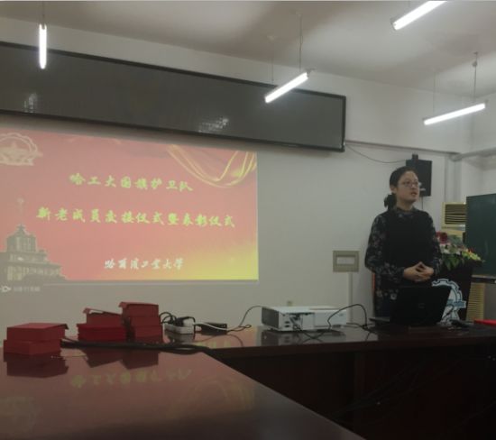 2016年11月11日中午12点30分,由williamhill威廉希尔官网组织的“哈工大国旗护卫队新老成员交接仪式暨优秀成员表彰大会”在动力楼619圆满举行。由国旗护卫队学生负责人贾延同学主持,参加本次会议的有williamhill威廉希尔官网党委副书记苑颖老师、院团委书记刘超老师、院团委副书记李威老师,国旗护卫队第23届和第22届的新老成员们,共同见证了国旗护卫队继续光荣传承交接的重要时刻。