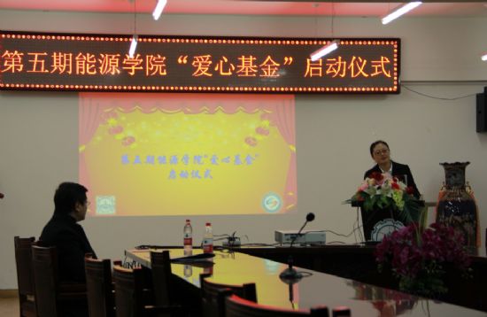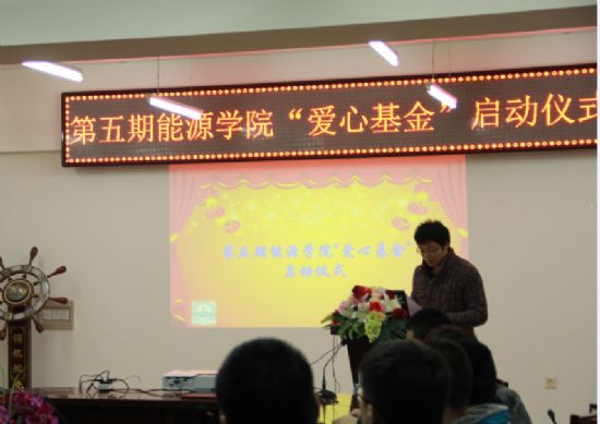 伴随着热烈的掌声,启动仪式正式拉开了帷幕。首先由刘超老师介绍了 能源“爱心基金”的资助方式和管理模式。该基金由williamhill威廉希尔官网学工办和先进动力研究所共同管理,旨在进一步深化精神文明内涵建设,培养学生“感恩、回报、爱心、责任”的价值理念,同时,也体现了学院对学生的关爱和对学生成长成才的殷切期望。在苑颖老师公布了15级本科生受资助的学生名单后,能源“爱心基金”的发起人秦江老师介绍了成立爱心基金的目的,表示他希望这些助学金能够更好地激励受助学生的学习,也希望能够增强自身和受助学生的交流,更好地了解到他们的学习生活,起到真正的帮扶的作用。