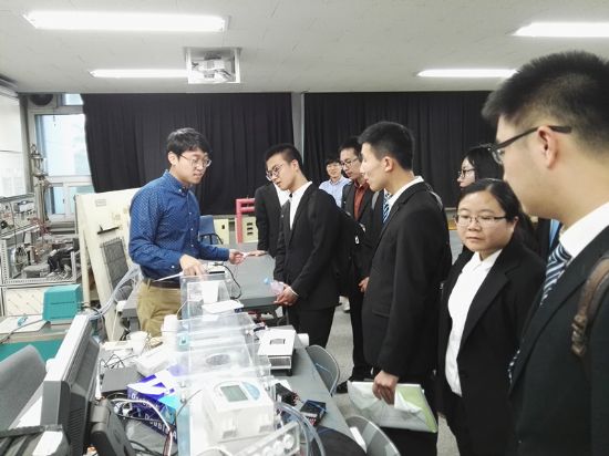 在报告交流之后,实践团成员参观了汉阳大学的实验室,包括高效换热器和除霜设备研究实验室、发动机喷油燃烧控制实验室、发动机排放控制实验室等。本次学术交流开拓了同学们的视野,促进了双方的学术交流,也增强了两校的合作关系。