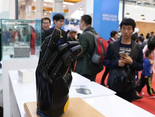 我校机器人灵巧手亮相世界机器人大会(李建飞 摄)