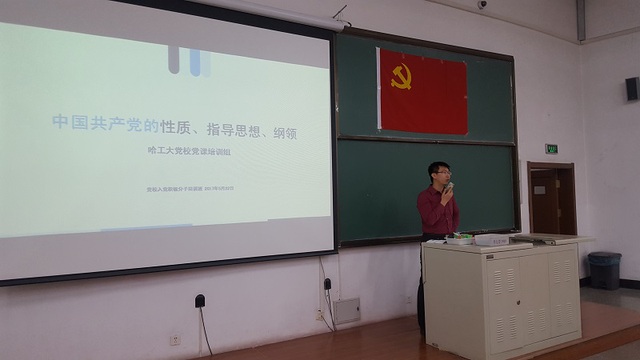 开学式结束后,机电学院院长助理李骁宇老师开始了本次培训班的第一讲。课上,他深入浅出的讲解了中国共产党的性质,指导思想和纲领,拉近了与同学间的交流,以自身工作经历生动的讲解了党的指导思想是如何指导生活与工作的。在一阵热烈的掌声中,本次积极分子培训班的第一讲圆满结束。