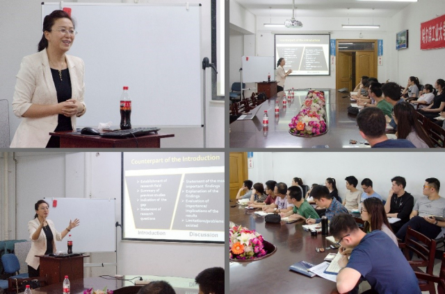 外国语学院国际语言中心(筹建)的孟勐、黄芙蓉、赵毓琴、杨莉萍、赵嘉影、常青、顾晓乐老师成立的英文科技论文写作工作坊近日在williamhill威廉希尔官网动力楼529会议室进行了第二、三次讲座。常青老师于5月31日带来的主题为“Discussion撰写结构”的讲座报告,孟勐老师于6月14日带来的主题为“行文撰写要点”的讲座报告。继顾晓乐老师关于“Introduction撰写模式与逻辑结构”的首次讲座之后,常青老师与孟勐老师进一步对英文论文其他部分的撰写提出了具体的指导思想及关键要素。