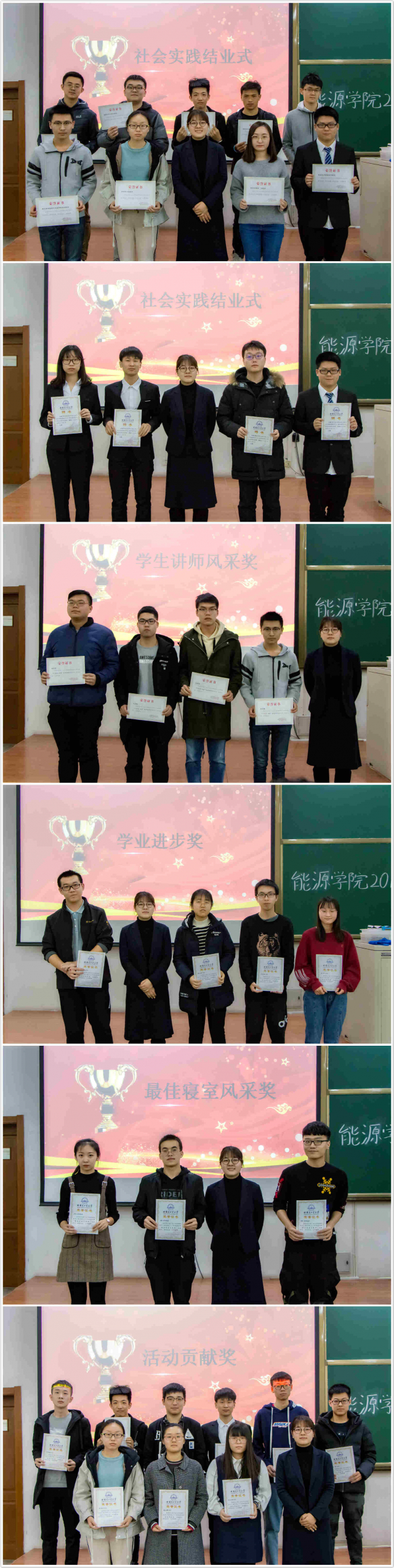 第二部分进行的是表彰大会,对在秋季学期表现突出的个人,寝室,团体给予了表彰和鼓励,辅导员蔡文雪对获奖同学表示祝贺并合影留念。感谢他们埋头苦干、默默付出,将心血与汗水化为创造的双手,为学院的建设添砖加瓦。