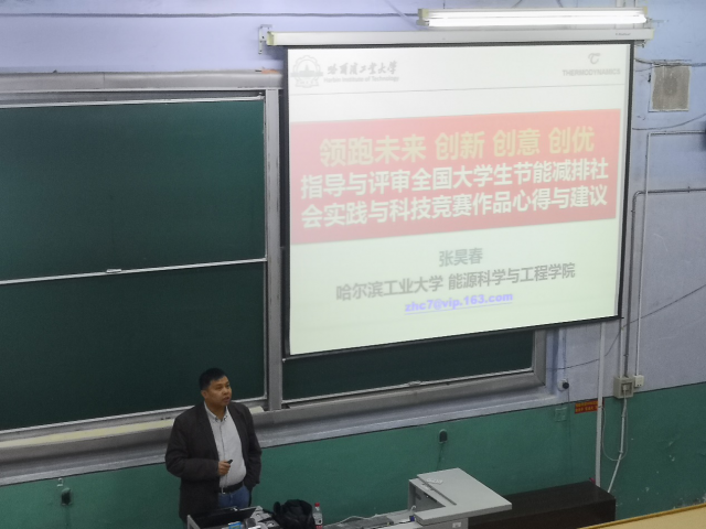 经验丰富的节能减排大赛指导和评委教师张昊春,为大家从竞赛日程、组队、选题、申报书等方面分别讲述,结合自身丰富的带队参赛和担任评委的经验,为同学们分析梳理了准备比赛、参加比赛过程中需要注意的要点。