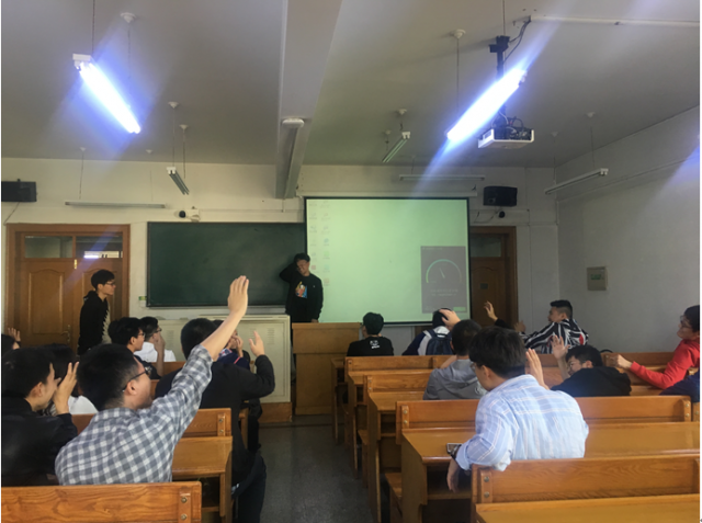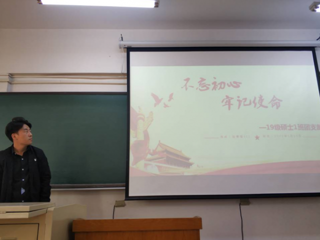 班会由团支部书记孙健伟主持。为深入学习贯彻习近平新时代中国特色社会主义思想,提高同学们的爱国情怀,班会分为以下两个部分:第一部分为“不忘初心”,通过播放历史影像和记录片,带大家回顾新中国成立过程的艰辛与发展中的不易,让大家明白如今的美好生活是经过奋斗而得来的,不应遗忘那些为祖国繁荣稳定做出巨大贡献的人们。第二部分为“牢记使命”,通过互动交流自由发言的方式,让大家憧憬今后的生活与工作,牢记身上肩负的使命与担当。