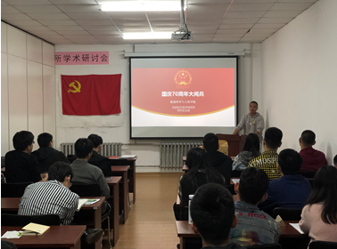 在优秀团员发言完毕后,全体同学一同聆听学习了红旗飘飘、我爱你中国等红色歌曲,唱起熟悉的旋律,怀着期待的心情,终于迎来阅兵仪式的开始。习近平总书记在阅兵仪式上指出,“中国的昨天已经写在人类的史册上,中国的今天正在亿万人民手中创造,中国的明天必将更加美好。”激起了同学们建设美好新中国的渴望,在实现中华民族伟大复兴的梦想征程中,与祖国一同成长的期待。