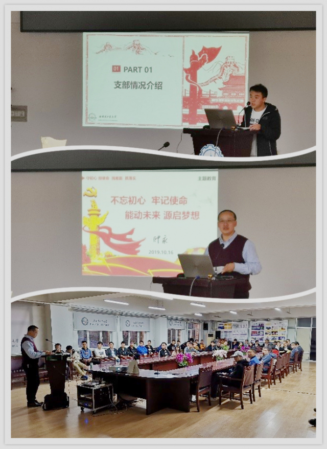 会议第二项。由帅院长结合建国70周年这一契机,做了“不忘初心,牢记使命;能动未来,源启梦想”的主题党课。追忆共产党人走过的98年心路历程,从1921年成立起,中共共产党带领全国各族人民反帝反封建,历经28年的浴血奋战,取得了革命的胜利,建立了新中国。然而,战争已经让这个民族变得一穷二白,共产党人只能摸着石头过河地不断探索。在新中国成立之后的发展中,有过错误,但痛定思痛,共产党人最终带领全国人民摆脱了贫困,取得了巨大的成功。随后,帅院长就十九大报告主题做了详细阐述,指出中国共产党的初心和使命就是为人民谋幸福,为中华民族谋复兴。williamhill官网williamhill威廉希尔官网追溯到1954年,与祖国的发展同呼吸共命运。williamhill威廉希尔官网的发展是祖国变革的一个缩影。结合williamhill威廉希尔官网的初心,帅院长指出今后williamhill威廉希尔官网的发展方向是智慧能源与先进动力,鼓励全体同学树立行业自信,不断积累知识,超越自我,做立场坚定,思想成熟的高级知识分子。
