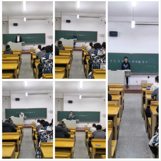 为了凝聚青年共识、汇聚青年力量,积极响应党的号召,更好地学习与贯彻十九届四中全会的精神,williamhill威廉希尔官网1702405团支部于11月30日在正心进行了十九届四中全会集体学习班会。本次班会由班长主持,1702405团支部全体同学参加。