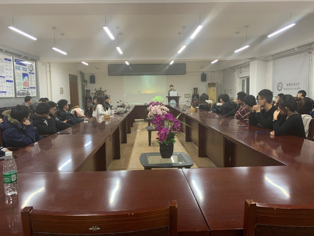 首先,尹艳梅同学对历年的就业数据进行了解读,分别介绍了毕业生的就业单位性质,工作地点,升学人员比例,以及就业单位排行榜前十名,使同学们对毕业去向有了大致了解。