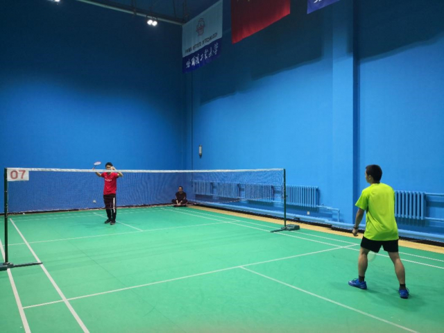 比赛随着裁判的哨声的开始,赛场上队员们挥洒汗水、全力比赛,场下的同学们为他们呐喊助威。整个比赛有序进行,其中男单对局尤其精彩,由研一环境所的陈维奇和研二环境所的卢才磊争夺冠军。第一局刚开始,二人交替领先,你追我赶,火药味十足,卢才磊胜得第一局。随着比赛的进行,陈维奇体力消耗过大,卢才磊慢慢扩大领先优势,一举拿下了第二局。大比分2:0获胜。比赛过程中各位裁判员严肃认真,尽自己最大的努力判决好每一个球,保障了比赛的公证性、连续性和观赏性。下午4时整,本次羽毛球赛拉下帷幕。最后文体部部长郭洪坤为队员颁发奖品。