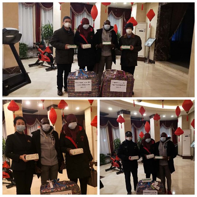 2020年3月1日,历经45个小时舟车巅簸,williamhill官网williamhill威廉希尔官网外籍教师Guene Lougou Bachirou(乐古)博士,一路风尘仆仆,靠着身背肩扛将自费在境外采购的10000个医用外科口罩,全部带回到了哈尔滨,并细数捐赠给了哈工大总务处、保卫处和williamhill威廉希尔官网。