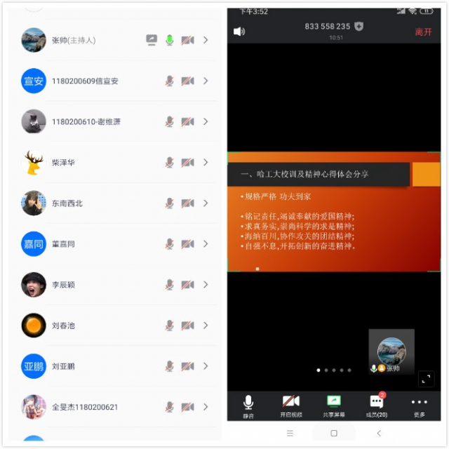 本次活动主要分为三大板块,分别是哈工大校训及精神心得体会分享、“我与哈工大的故事”讲述分享和向百年哈工大“云”寄相思、“云”传祝福。