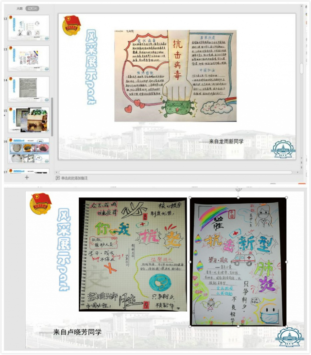此次活动中,画手报等多样的线下活动形式让同学们真正动手动脑去思考与总结,增强了同学们参与活动的真实感受。线上会议的总结交流也使同学们更进一步深入学习精神内容,不断深化主题。“最佳风采”称号评选以及奖励活动更让同学们切实感受活动带来的收获。活动不仅展示了同学居家抗“疫”的风采,也体现了团支部的“战斗”精神。