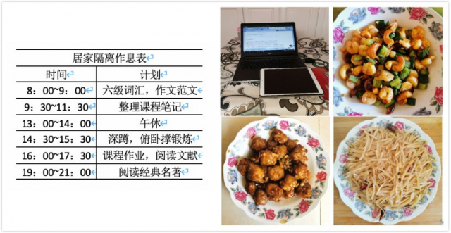 作为哈工大的研究生,唐宇翔、张健等同学在疫情期间除了做到居家少外出,坚决不给国家添乱之外,每天还制定着充实的学习计划,认真学习,确保科研任务有条不紊的进行;王淳纬等同学,为卫生知识匮乏的亲戚朋友宣传防疫重点,并向他们展示了口罩的正确戴法,履行着优秀党员及团员的责任与义务;高庆华同学等人,在学习之余,掌握一些其他的生活技能,让自己的业余生活更加丰富多彩。