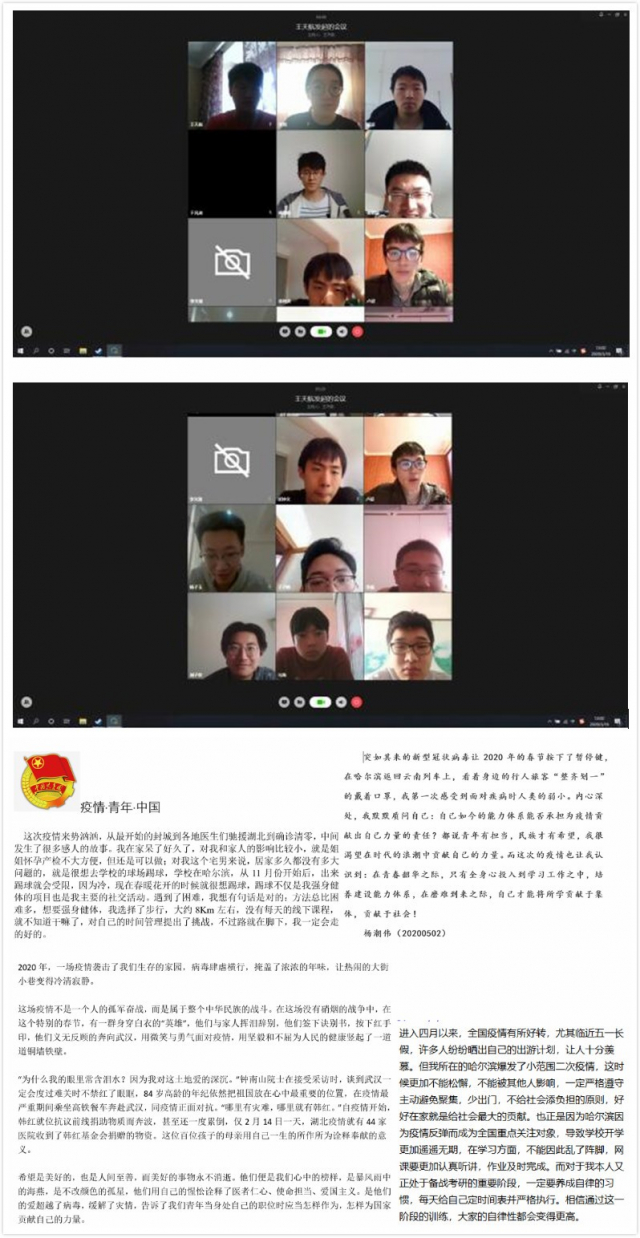 为在建校百年的重要阶段深入推进爱国主义教育,培养堪当大任的新时代青年,贯彻党中央关于新冠肺炎疫情防控各项决策部署,williamhill威廉希尔官网1702402团支部于5月2日下午在线上开展了“疫情·青年·中国——线上思考体悟交流会”团日活动。本次活动由团支书刘子仪主持,支部全体成员参加了本次活动。