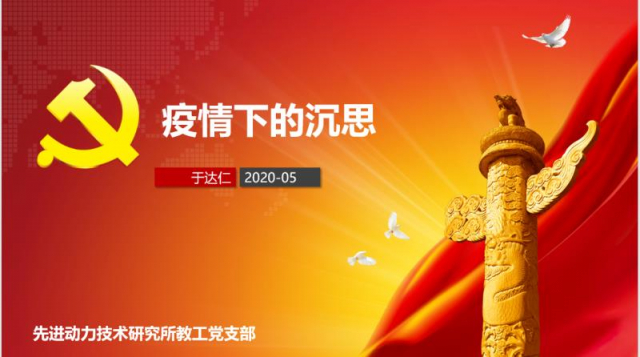 本次党课通过腾讯会议直播,于老师从五方面解读疫情以来的思考和建议。于老师首先对2020年以来新冠肺炎的背景做了回顾,通过本次疫情看中国一直提倡的人类命运共同体在当今社会构建的必要性,以及中国是如何践行人类命运共同体的。