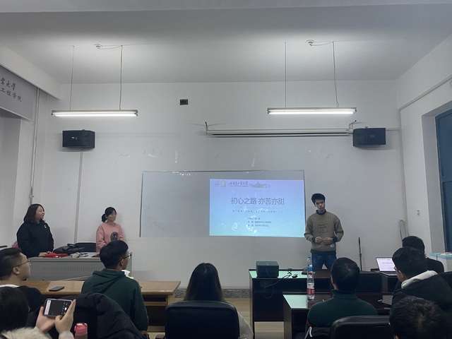 本次活动还邀请到“迷彩精兵”周霖同学为大家讲解自己两年的军旅生涯以及当兵相关政策,通过周霖同学的讲解,同学们更加珍惜当前的生活,认真践行两学一做要求,不忘初心,牢记使命。