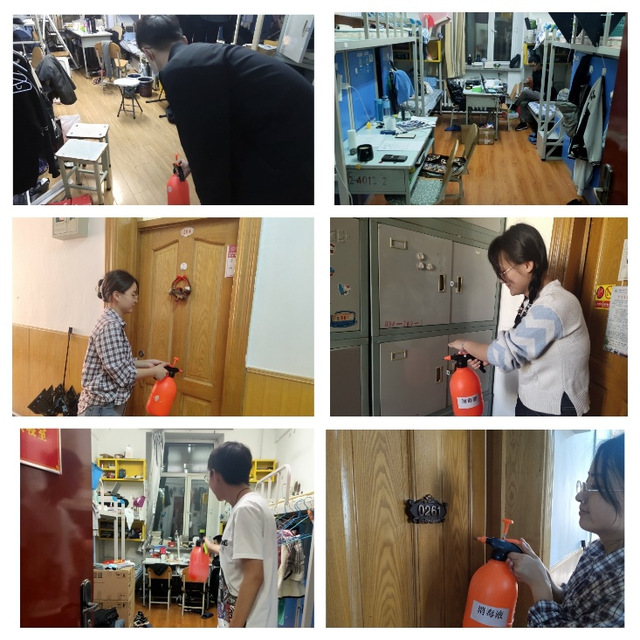 在本次活动中,williamhill威廉希尔官网寝室公寓管理委员会划分消毒区域,各成员领取消毒喷壶,并前往各寝室对走廊、地板以及门把手进行全方位的消毒液喷洒工作,尤其是对容易滋生细菌的卫生死角进行重点喷洒,做到消毒工作合理化,科学化。此外,委员会成员还对消毒过程和卫生状况良好的寝室进行拍照记录。