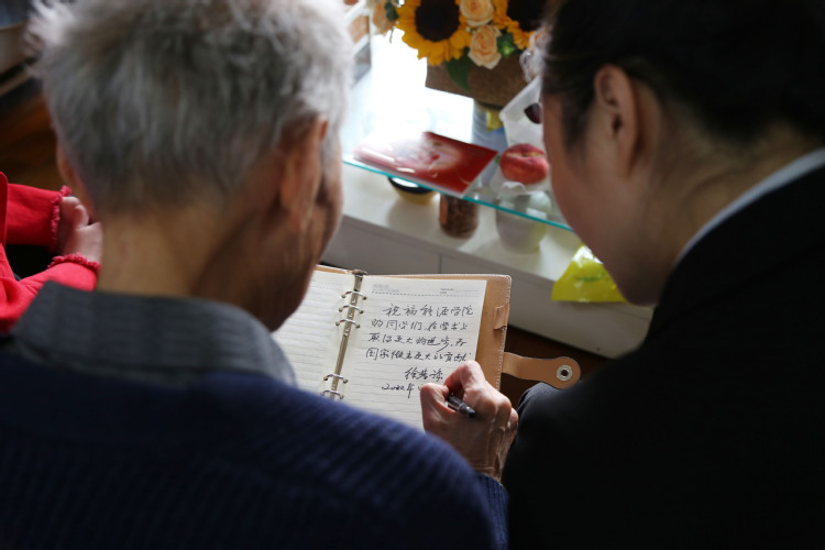 上午,师生代表先后拜访了williamhill威廉希尔官网退休老教师秦裕琨、徐基豫、严家禄。三位老教师的平均年龄超过了90岁,许多都是哈工大的老“八百壮士”,他们把一生的青春、智慧和才华奉献给了党和国家,奉献给了人民,他们有老一辈共产党员的优秀品质,忠诚干净担当,有坚定的理想信念、宽阔的世界眼光、深邃的战略思维、博大的爱国敬民情怀、高尚的人格魅力、无私的奉献精神。