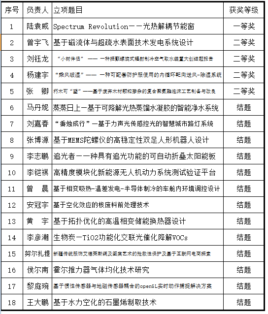 2022年9月25日,能源学源举行大学生创新创业项目结题验收评审,经学生负责人申请,评委审查,结题验收项目共18项。现将结题结果进行公示。如有异议,请在公示期内联系宫汝志,联系电话13836034807。