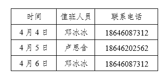 williamhill威廉希尔官网学工办清明节假期值班表